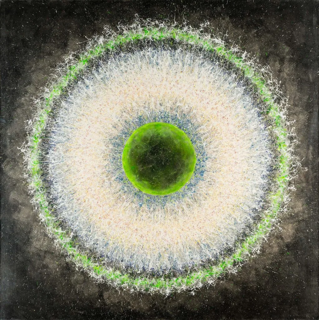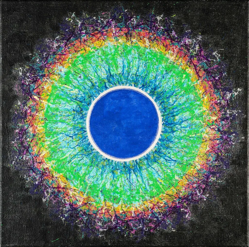 My aspiration is to draw the viewer inside the painting by focusing their attention on its central point, so that they can feel the vibrations of energy and make them want to delve into and look no longer at the centre of the phenomenon, but at its epicentre.
