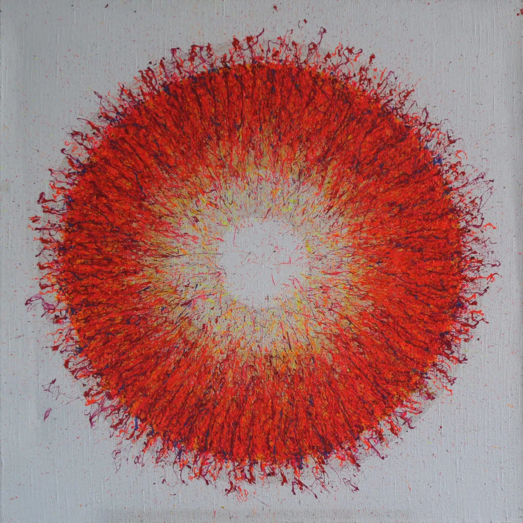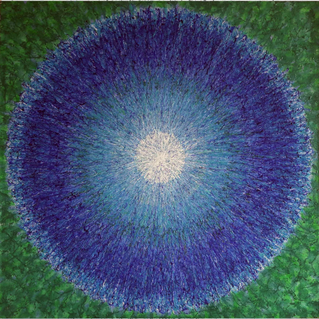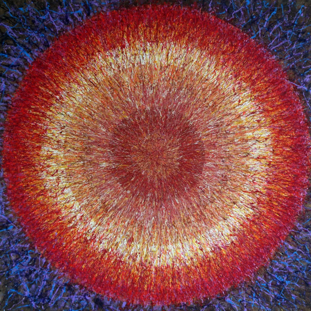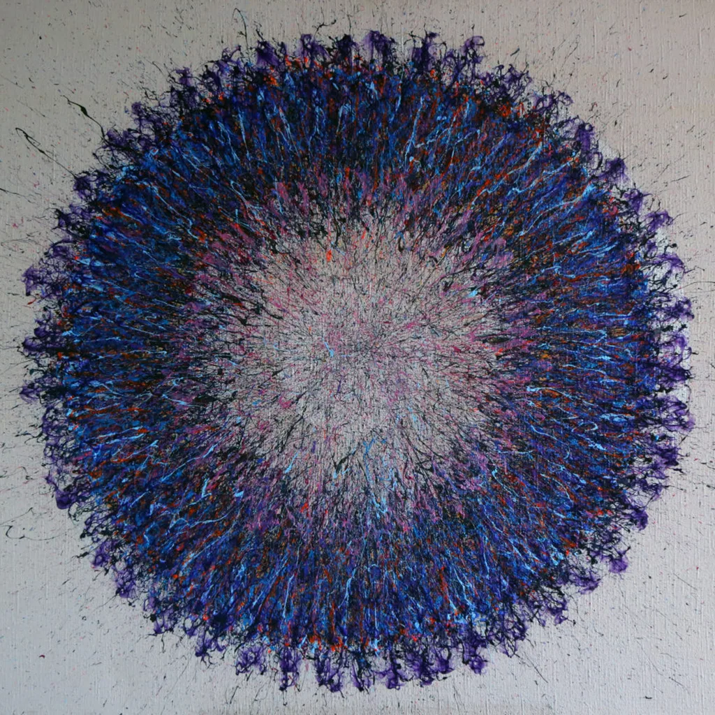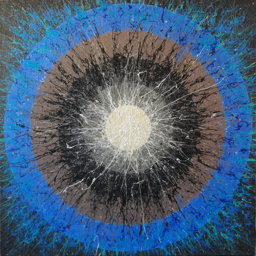 My aspiration is to draw the viewer inside the painting by focusing their attention on its central point, so that they can feel the vibrations of energy and make them want to delve into and look no longer at the centre of the phenomenon, but at its epicentre.
