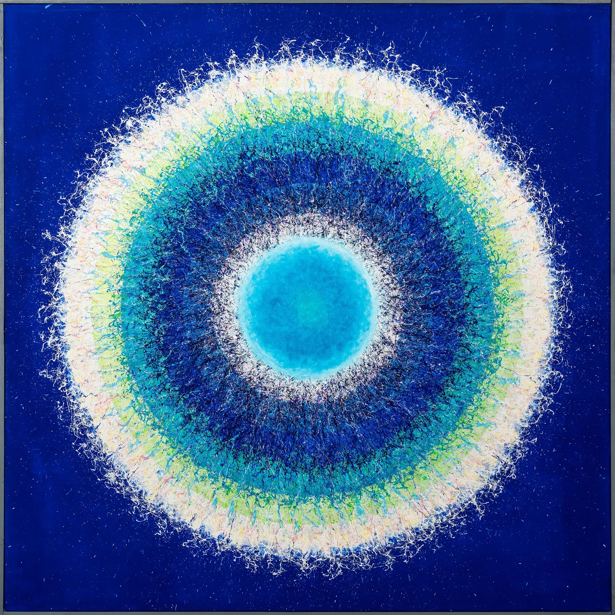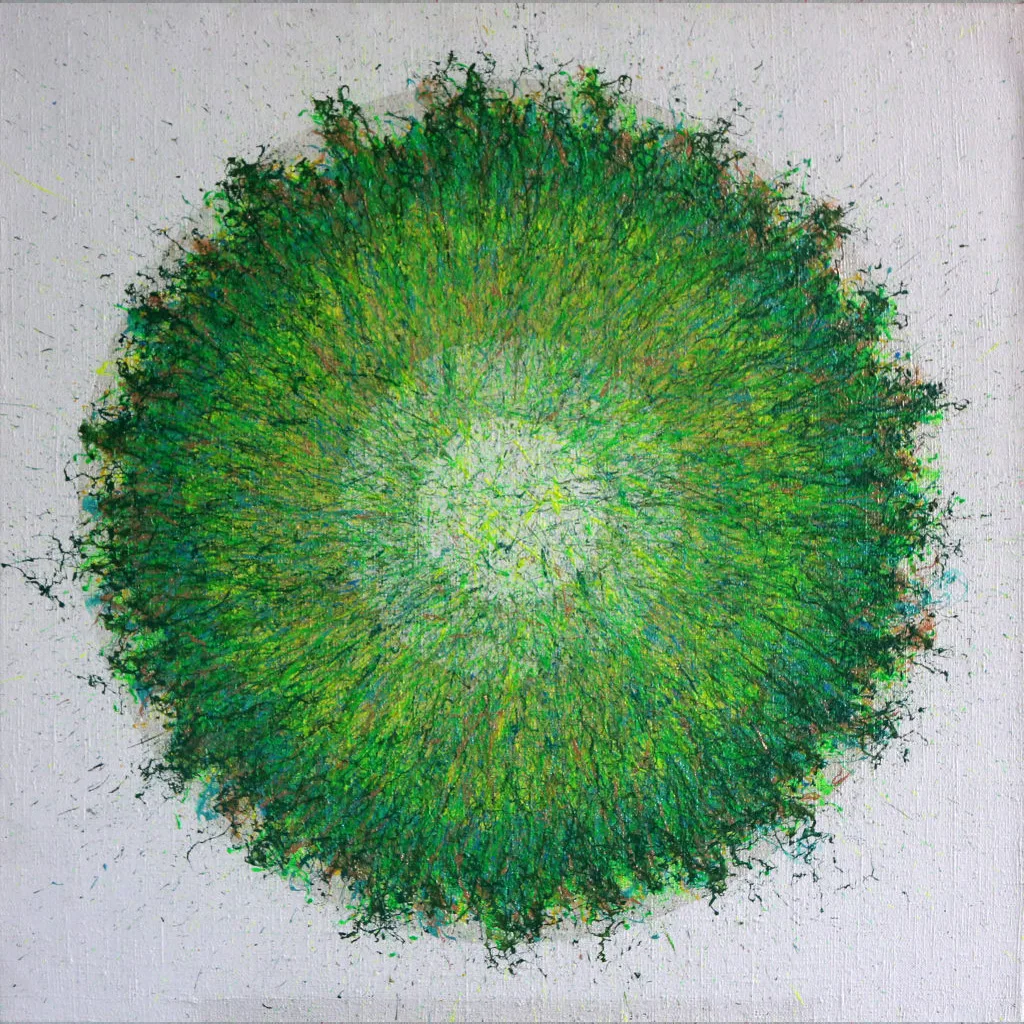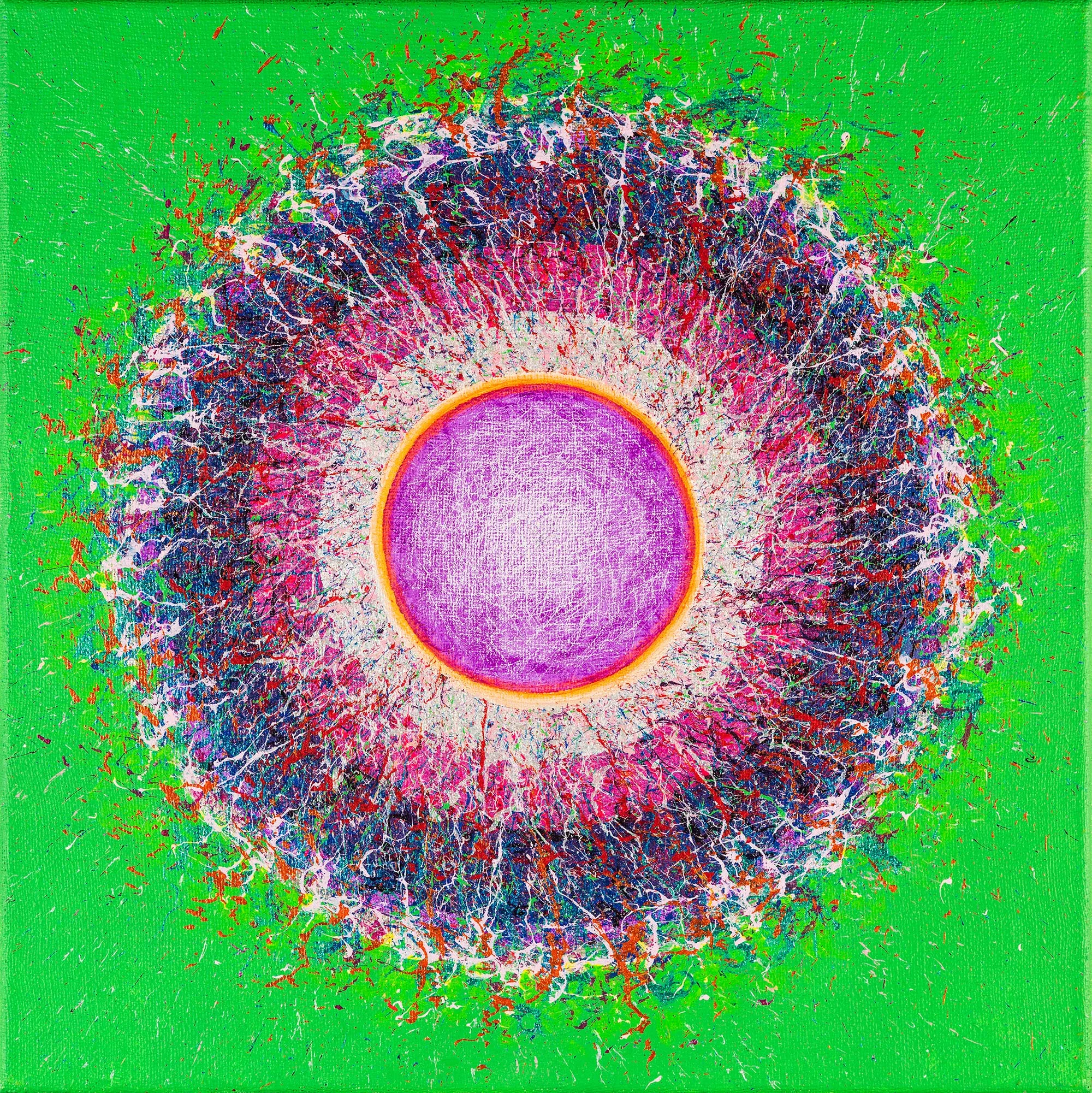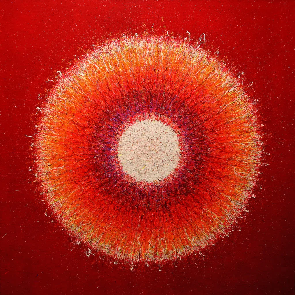 My aspiration is to draw the viewer inside the painting by focusing their attention on its central point, so that they can feel the vibrations of energy and make them want to delve into and look no longer at the centre of the phenomenon, but at its epicentre.