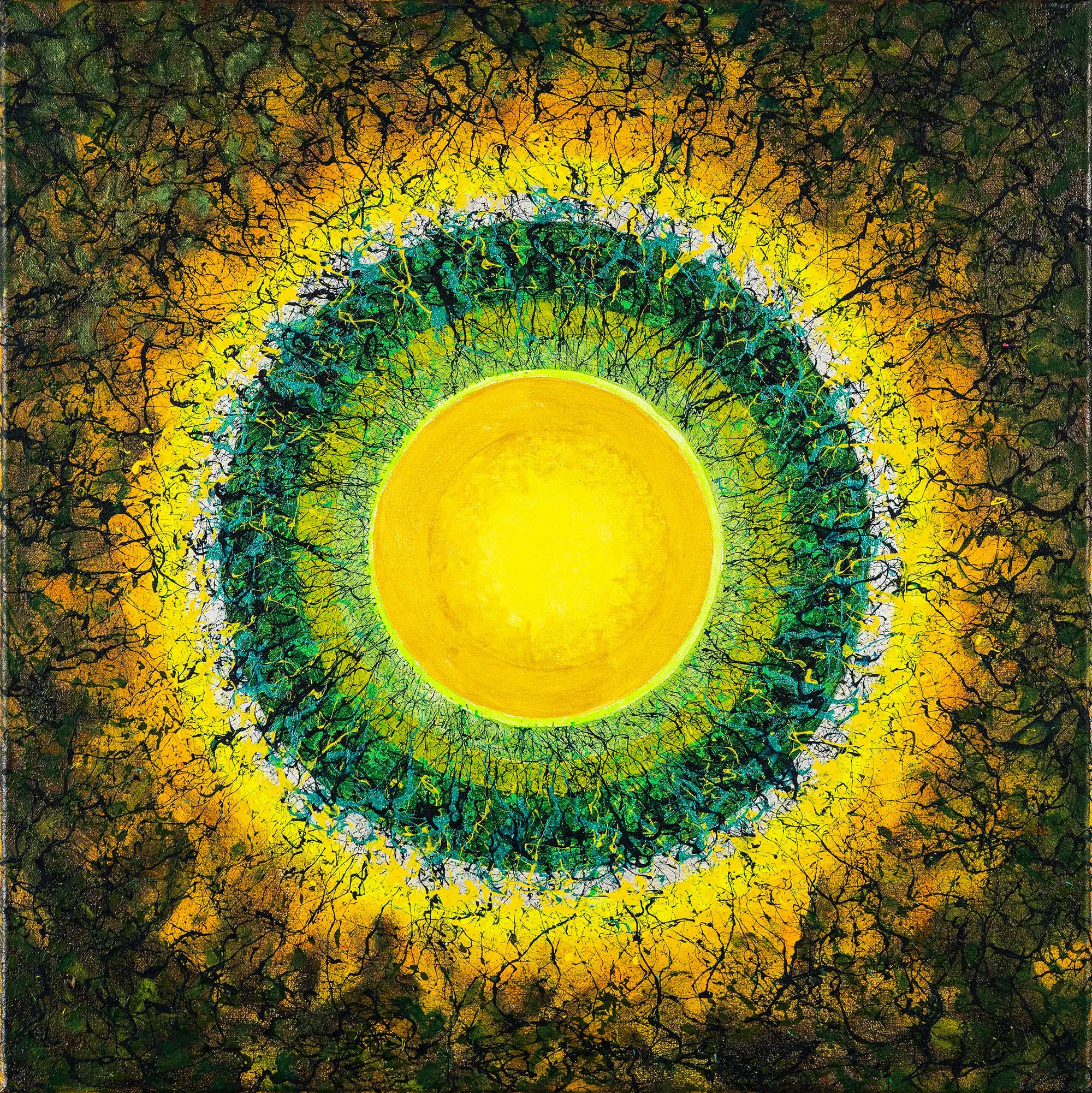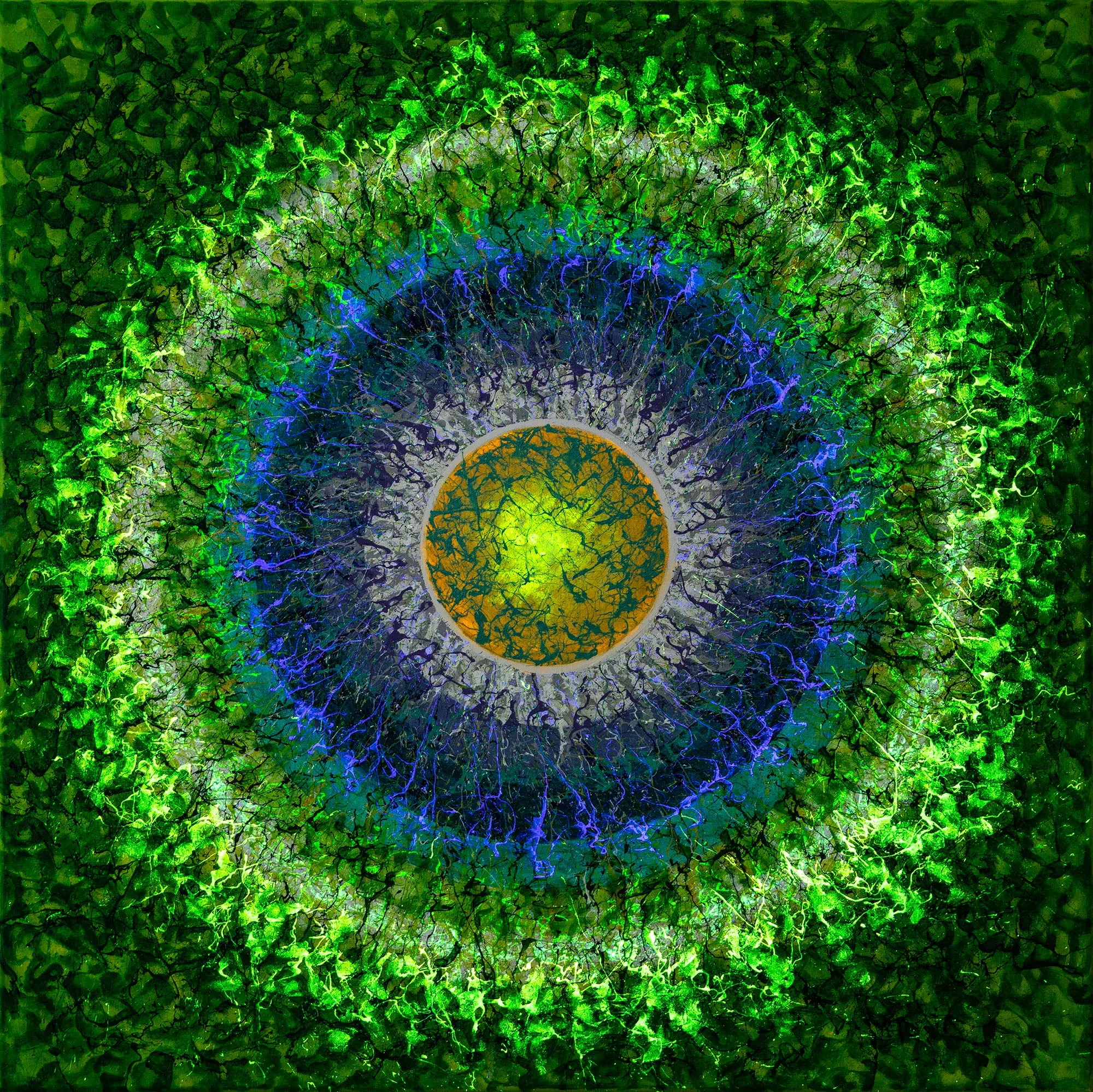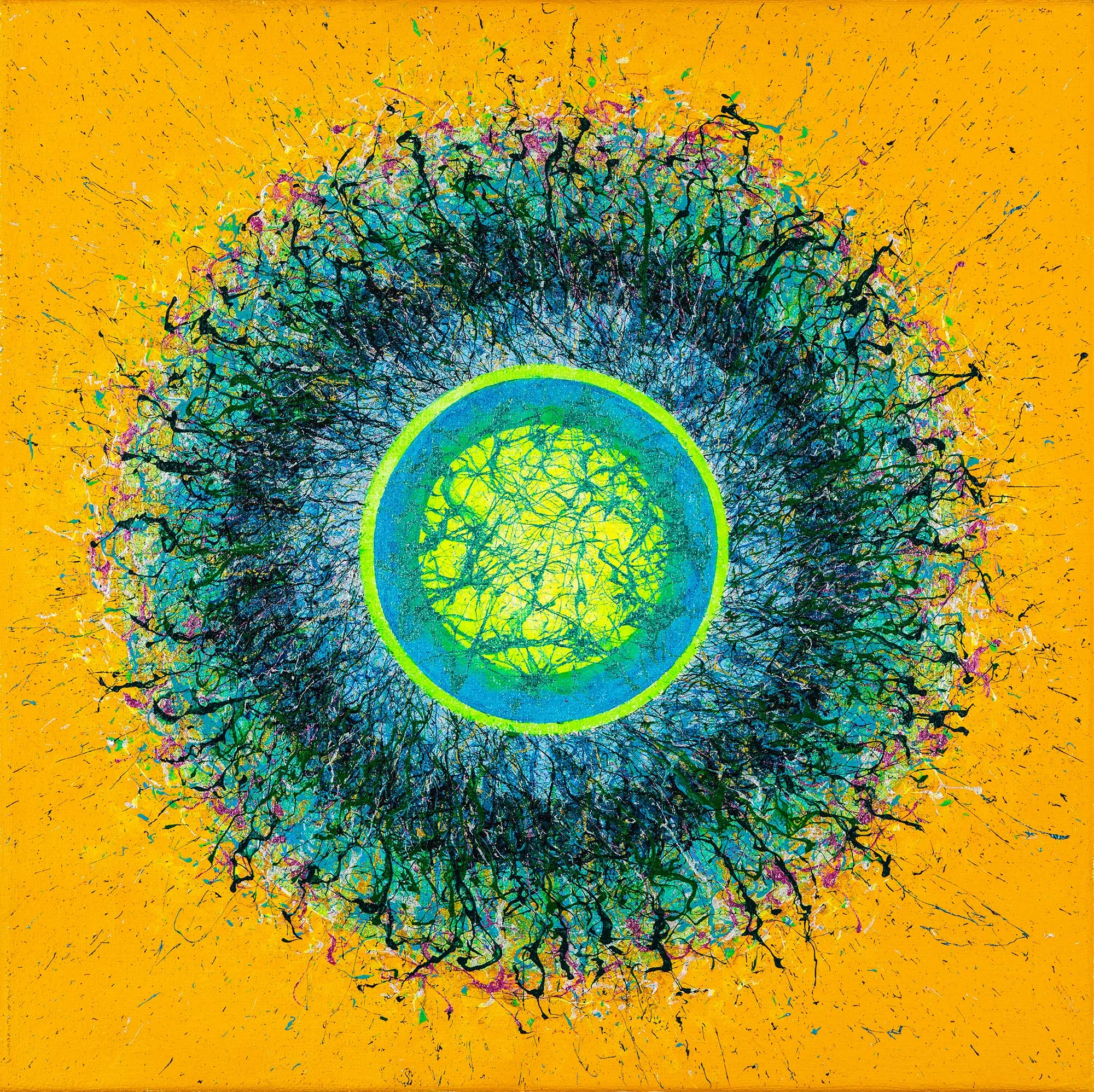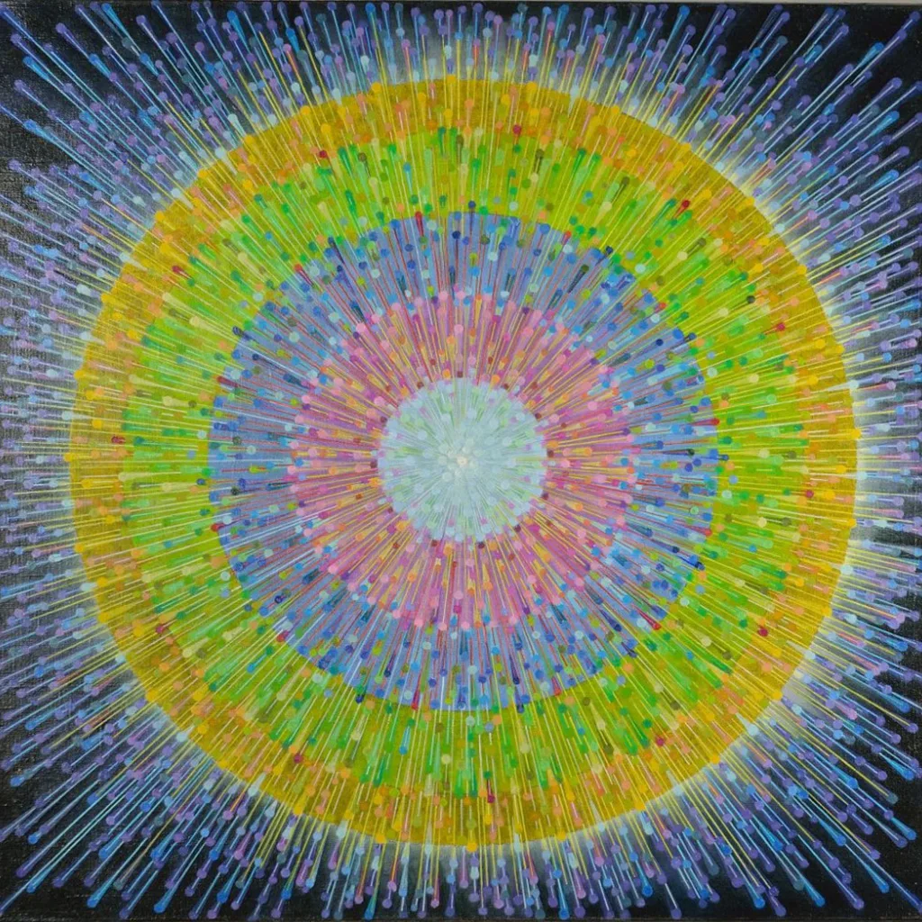 My aspiration is to draw the viewer inside the painting by focusing their attention on its central point, so that they can feel the vibrations of energy and make them want to delve into and look no longer at the centre of the phenomenon, but at its epicentre.