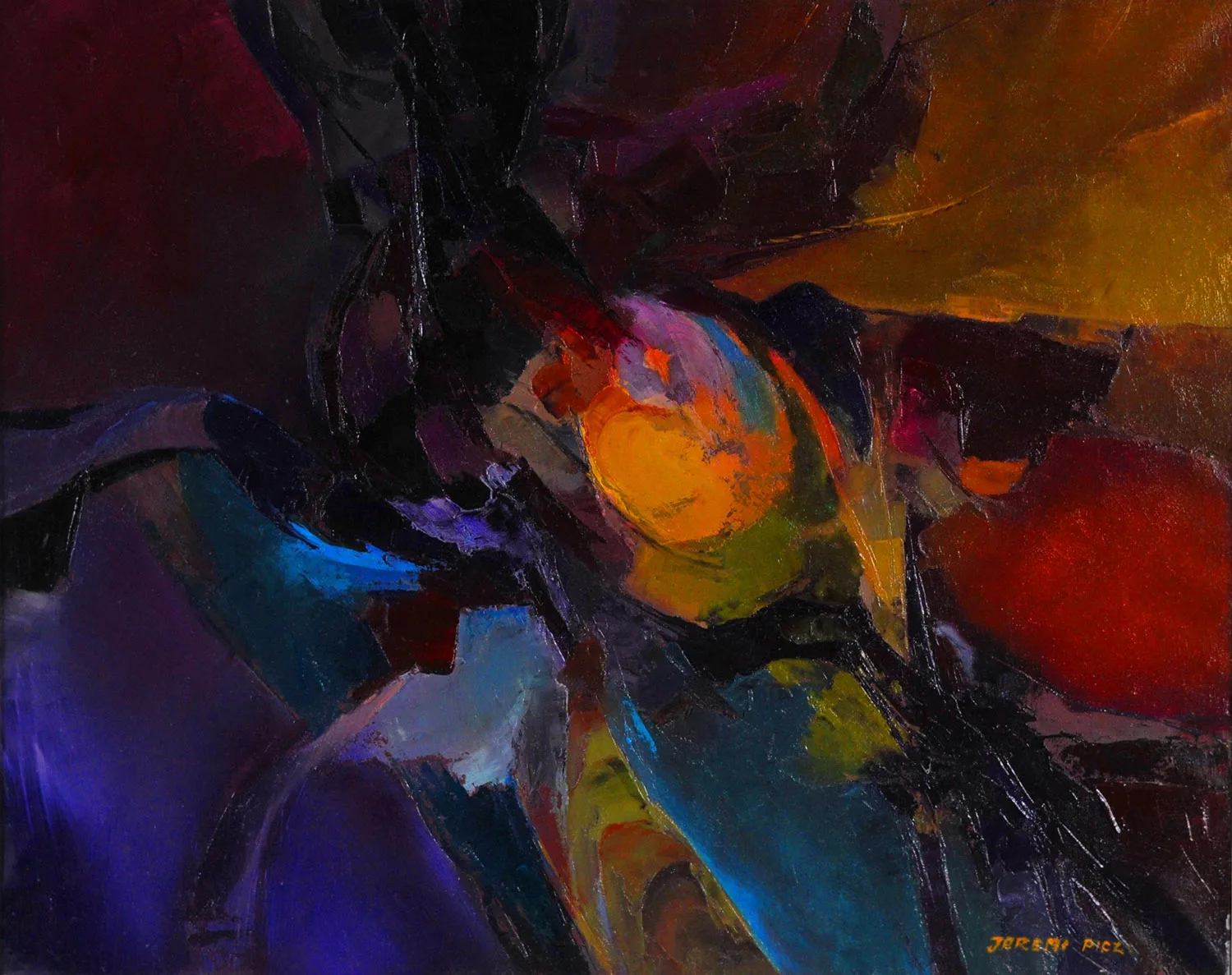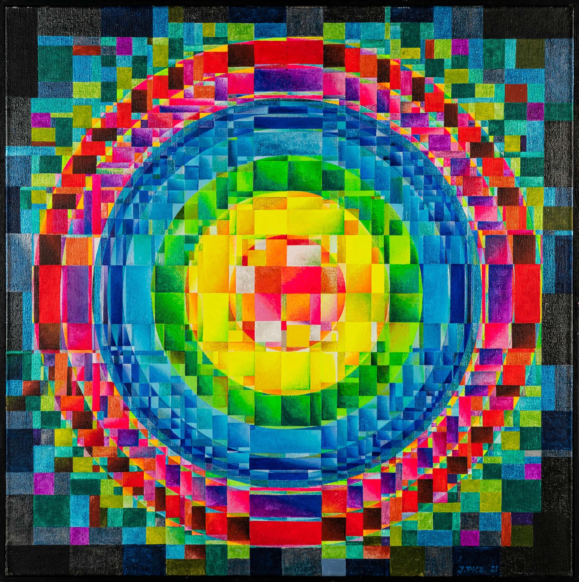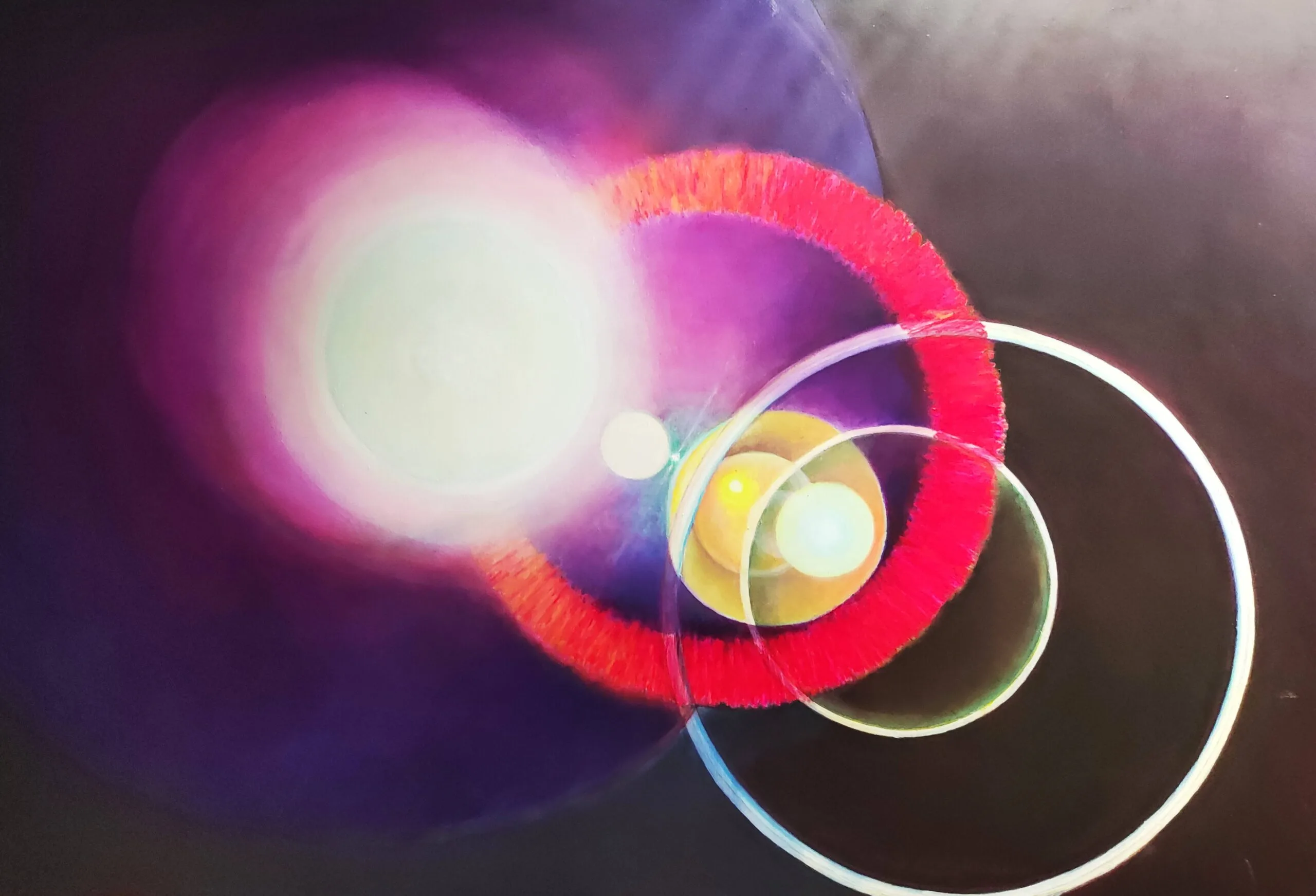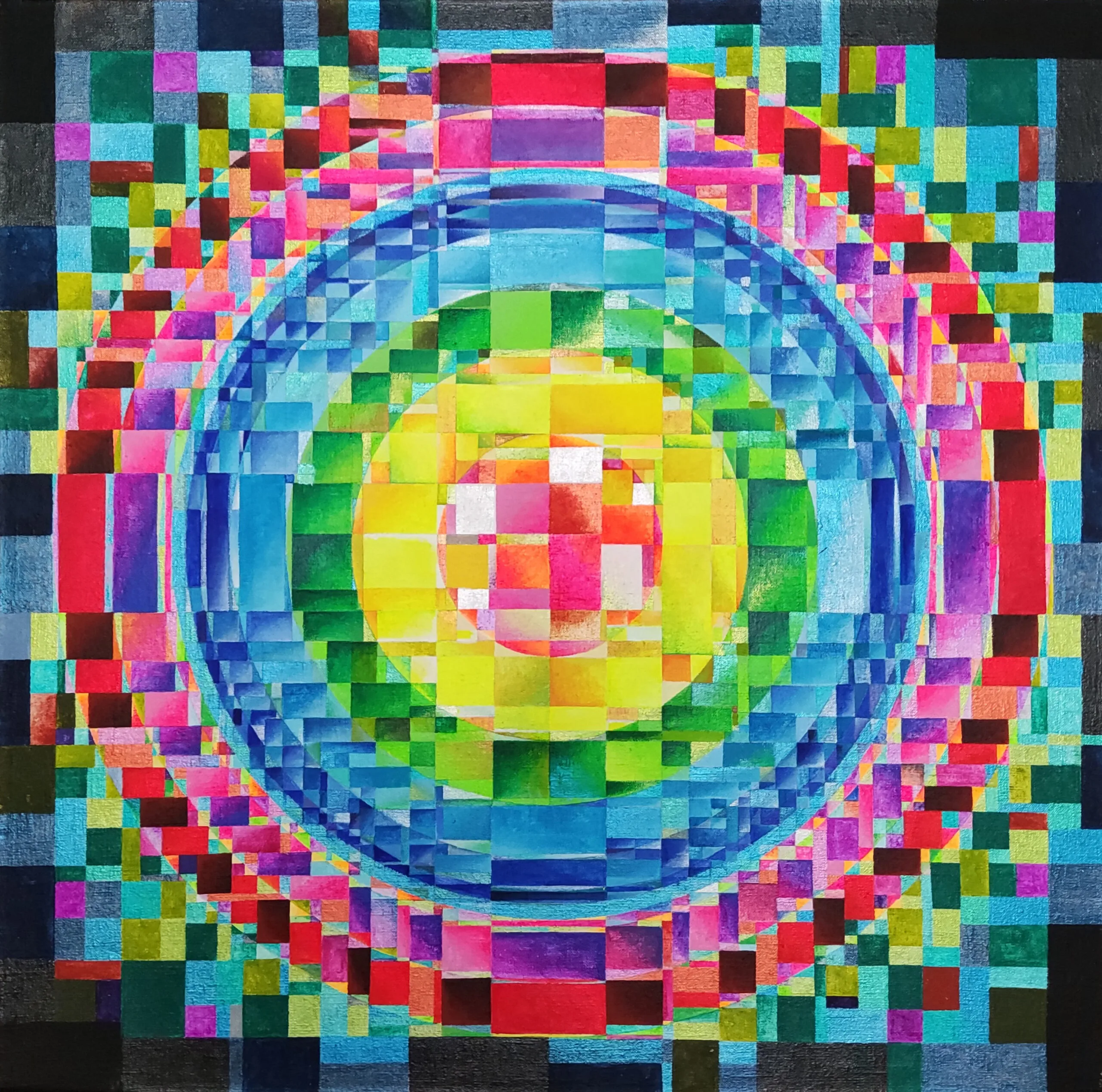 My aspiration is to draw the viewer inside the painting by focusing their attention on its central point, so that they can feel the vibrations of energy and make them want to delve into and look no longer at the centre of the phenomenon, but at its epicentre.
