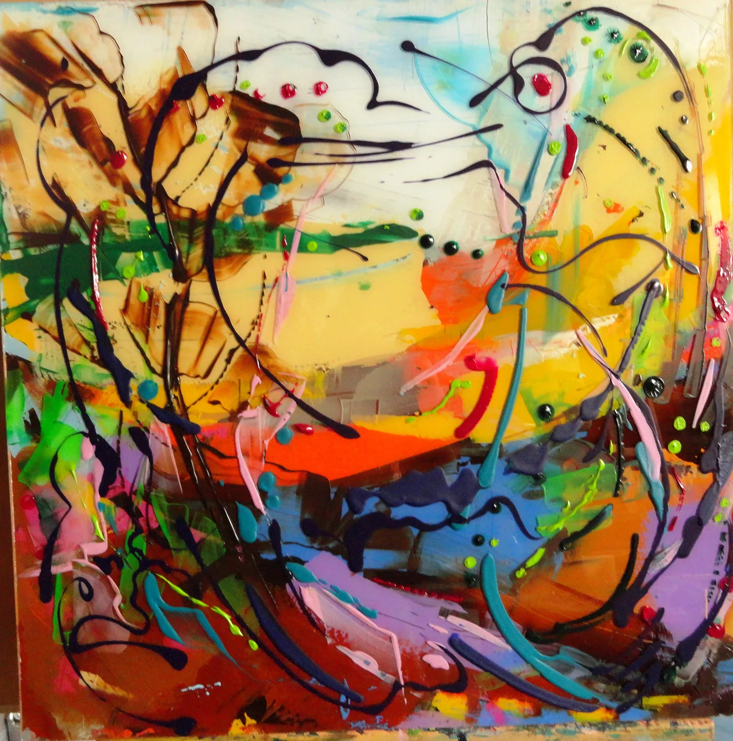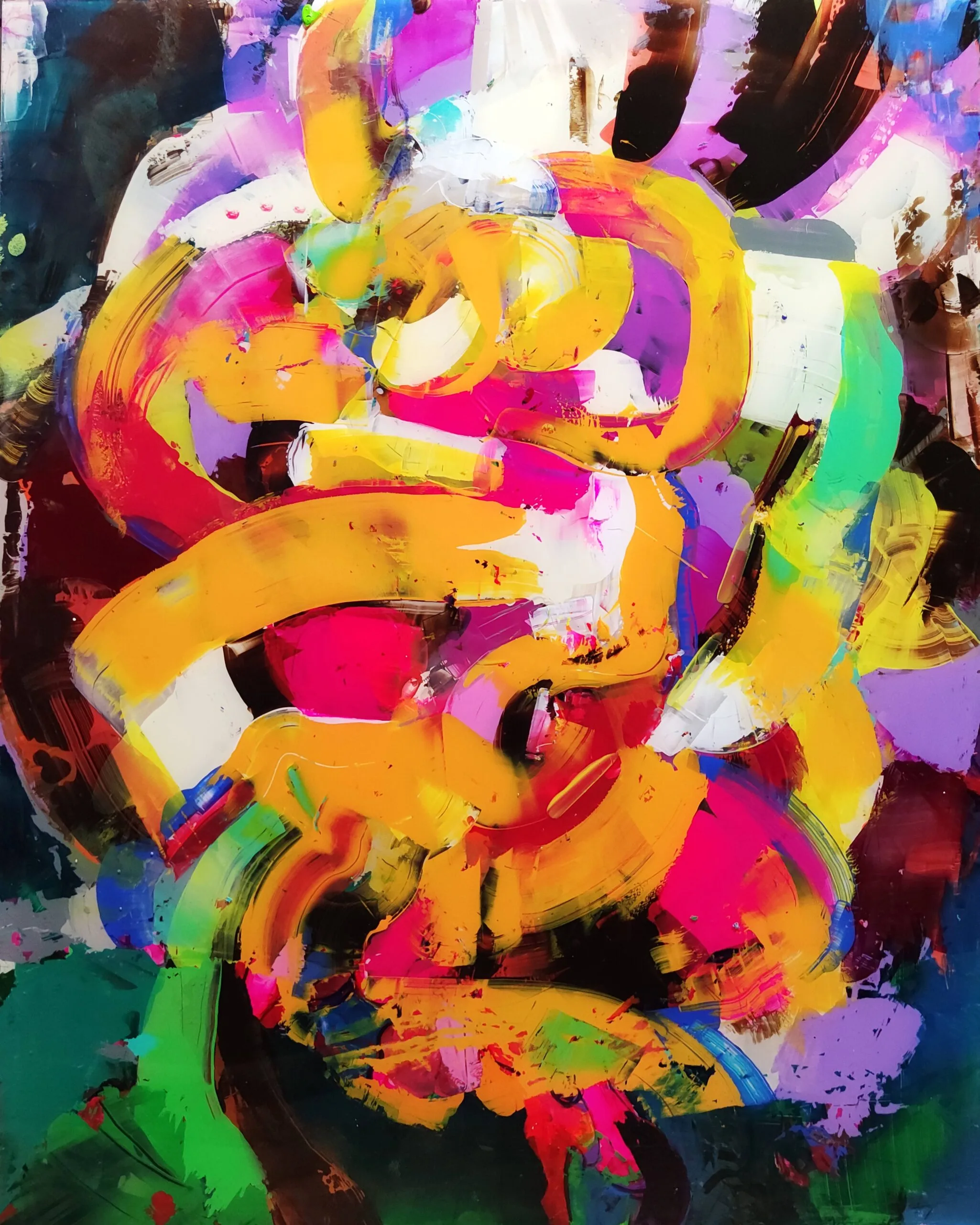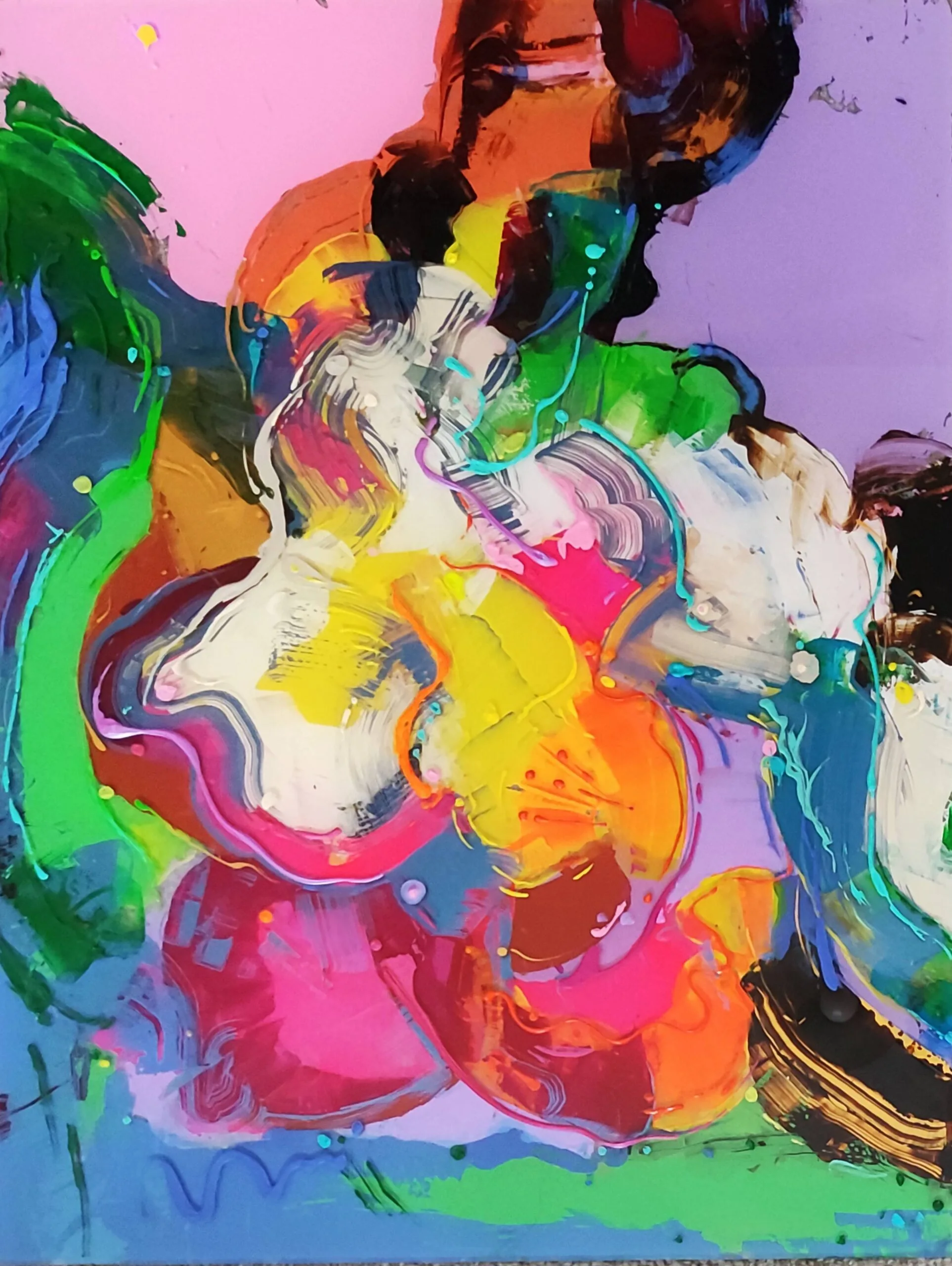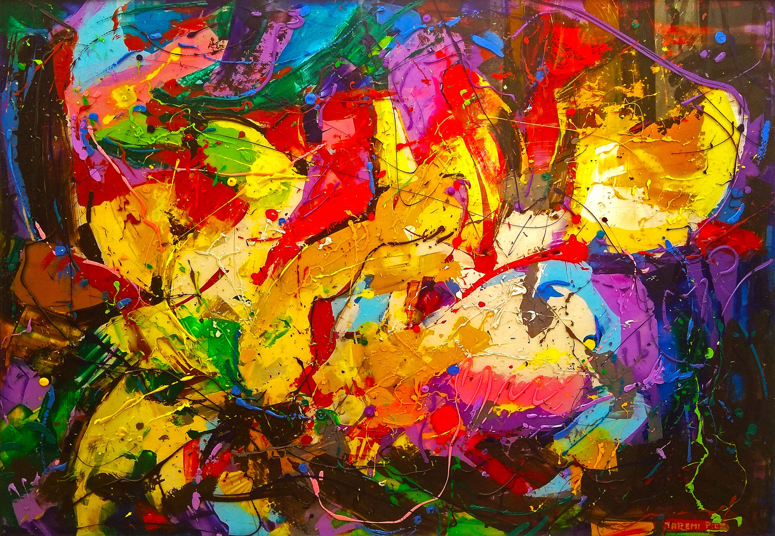 The second idea for the technical construction of my paintings was inspired by the works of Jackson Pollock, where through a random, statistically unpredictable placement of paint on the canvas, he builds his own, despite everything, an extremely ordered world.