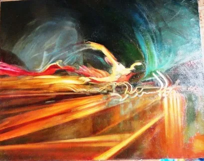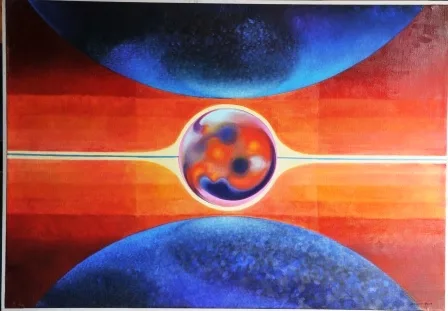 Using the means of painting, I wish to show a phenomenon not only physical but also metaphysical. The symbolic display of the phenomenon of continuity and indissolubility of two elements – spirit and matter. The energy released during the explosion, scattering stardust in space, creating the seed of new life, new beings, is constant and is the driving force of all change.